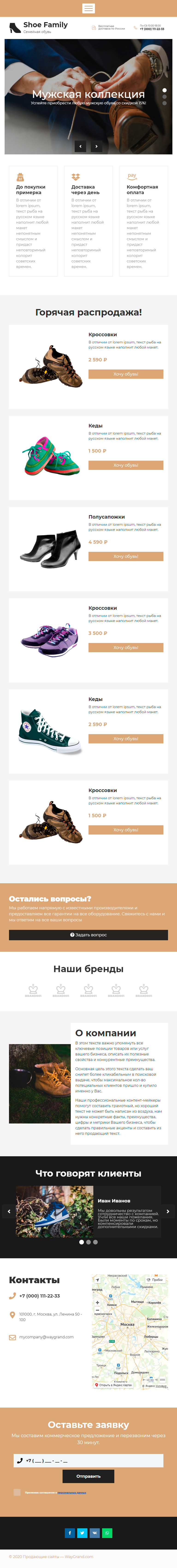 Закажите готовый продающий сайт лендинг #1517201 в Подольске за 1-3 дня «под ключ»: свёрстан, отрисован и готов к рекламе. Тематика шаблона «Обувь».