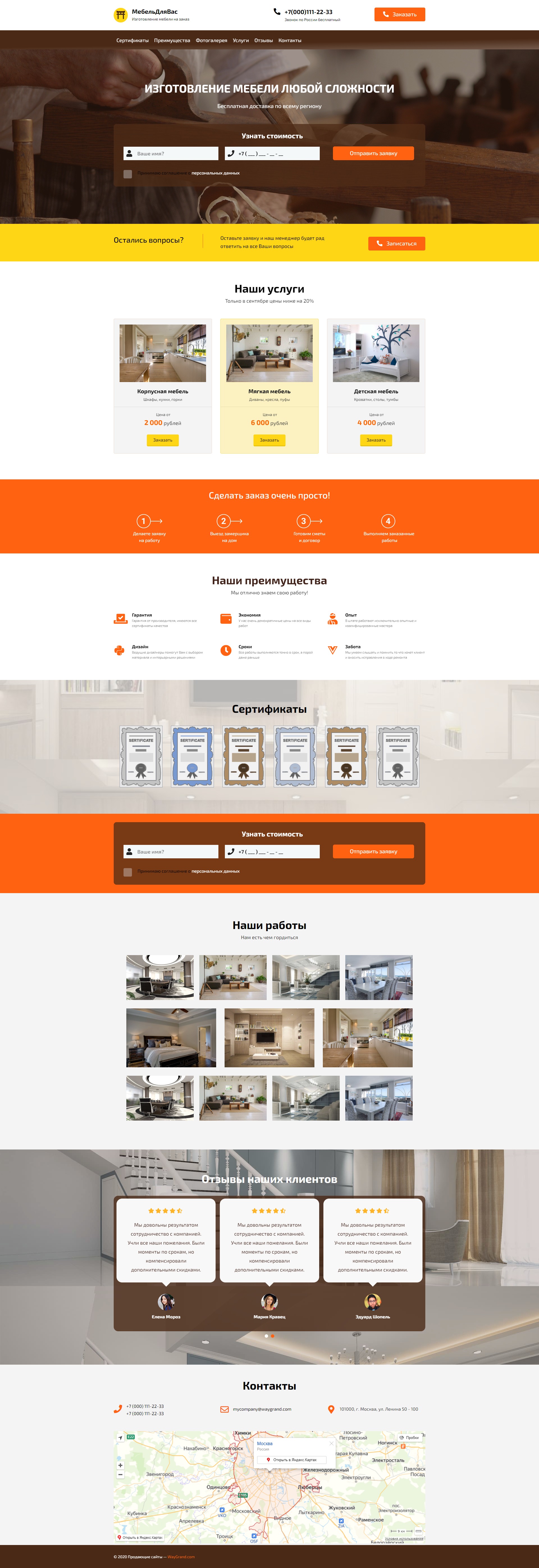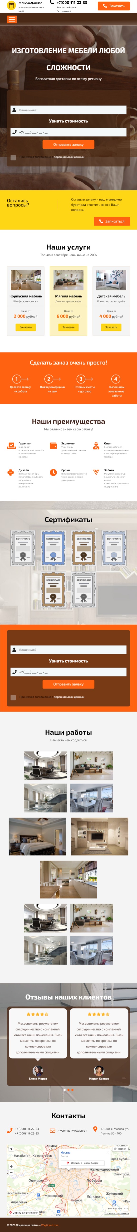 Закажите готовый продающий сайт лендинг #0903201 в Подольске за 1-3 дня «под ключ»: свёрстан, отрисован и готов к рекламе. Тематика шаблона «Изготовление мебели».