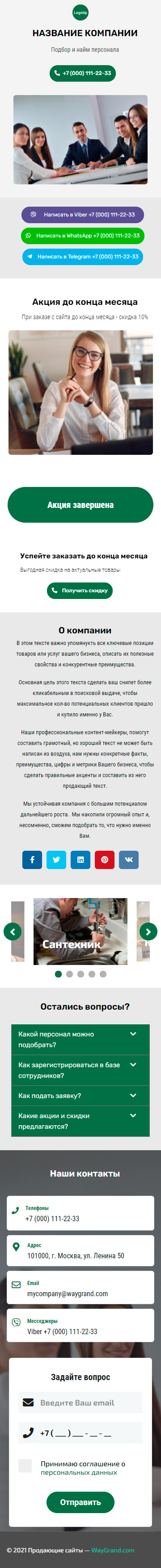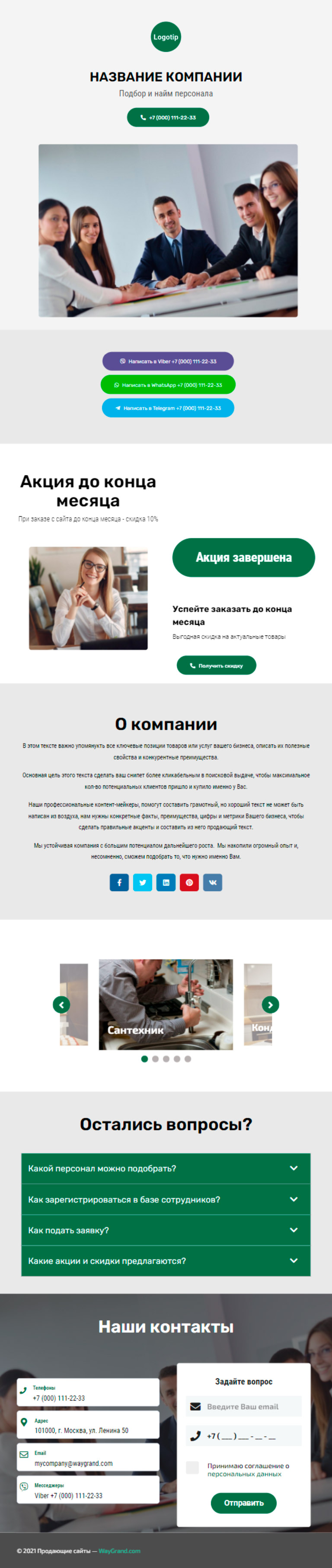 Закажите готовый продающий сайт визитка #1415101 в Подольске за 5-7 дня «под ключ»: свёрстан, отрисован и готов к рекламе. Тематика шаблона «Подбор и найм персонала».