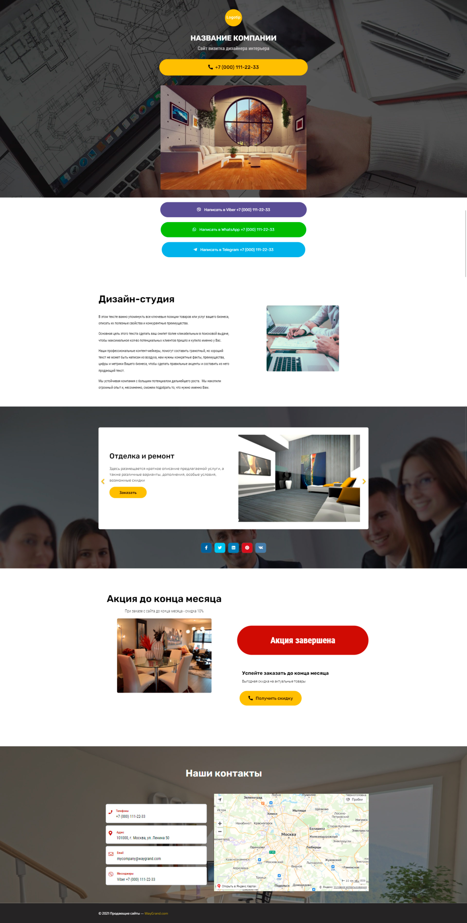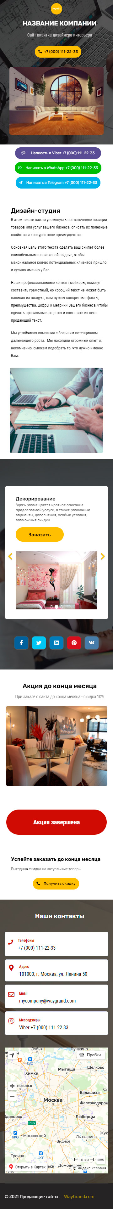 Закажите готовый продающий сайт визитка #2124101 в Подольске за 5-7 дня «под ключ»: свёрстан, отрисован и готов к рекламе. Тематика шаблона «Дизайн интерьеров».