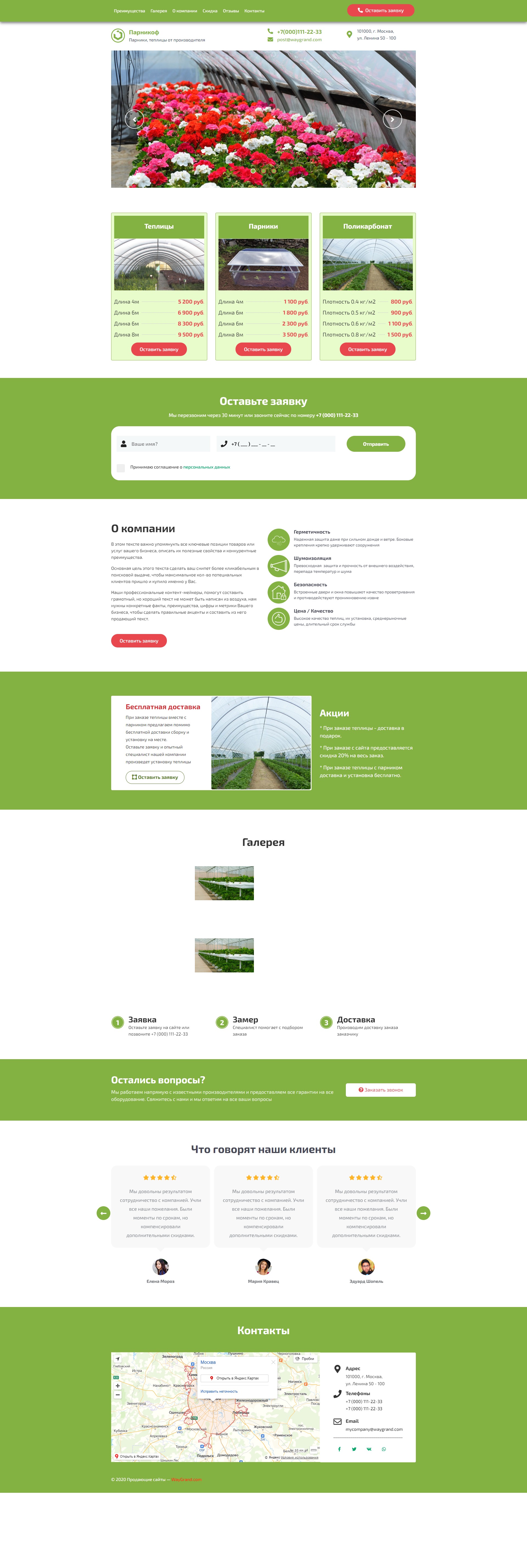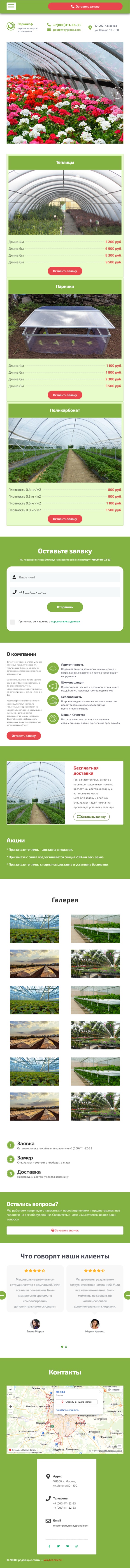 Закажите готовый продающий сайт лендинг #2624202 в Подольске за 1-3 дня «под ключ»: свёрстан, отрисован и готов к рекламе. Тематика шаблона «Парники и теплицы».