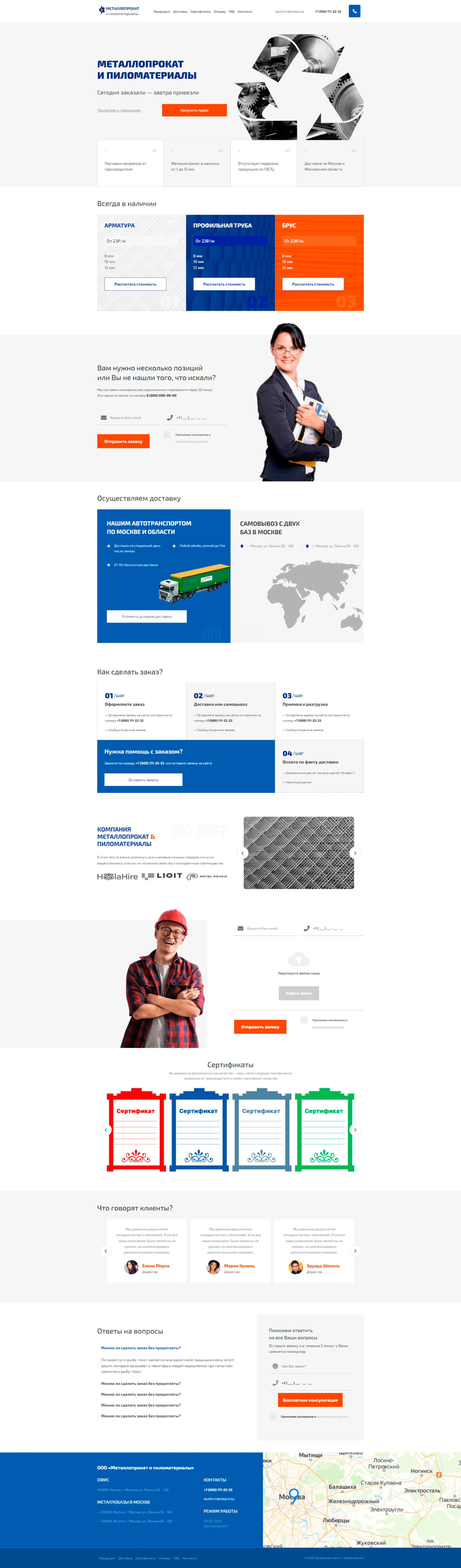 Закажите готовый продающий сайт лендинг #1211201 в Подольске за 1-3 дня «под ключ»: свёрстан, отрисован и готов к рекламе. Тематика шаблона «Металлопрокат и пиломатериалы».