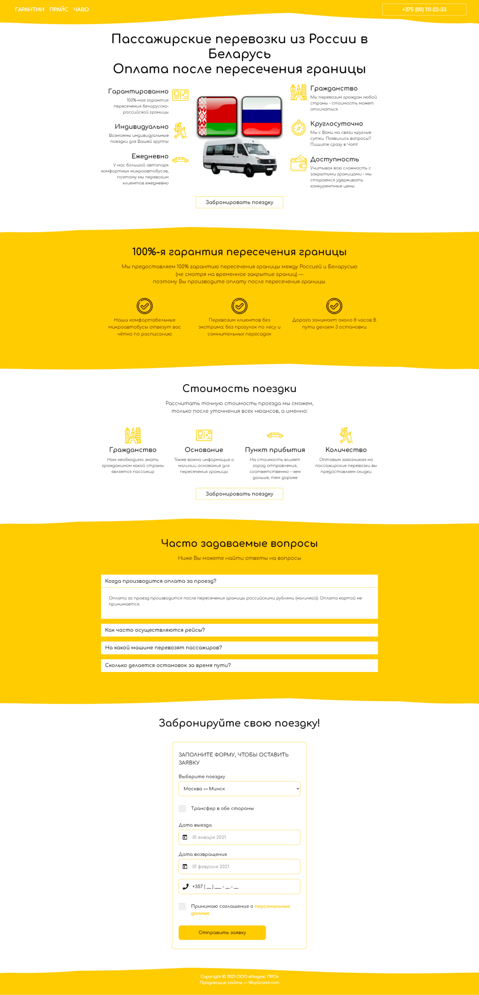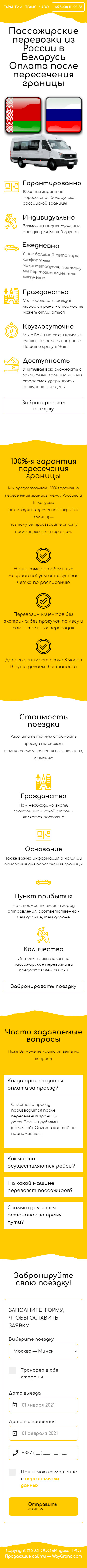 Закажите готовый продающий сайт лендинг #2528203 в Подольске за 1-3 дня «под ключ»: свёрстан, отрисован и готов к рекламе. Тематика шаблона «Пассажирские перевозки из России в Беларусь».