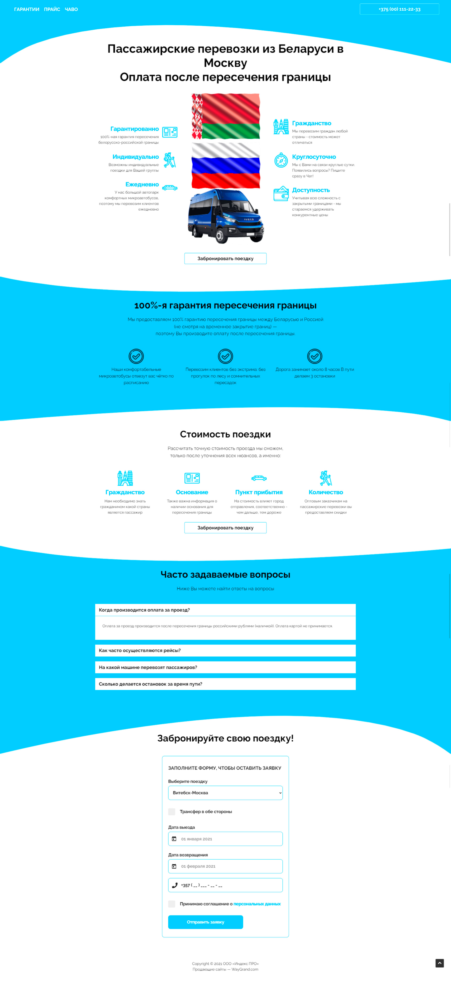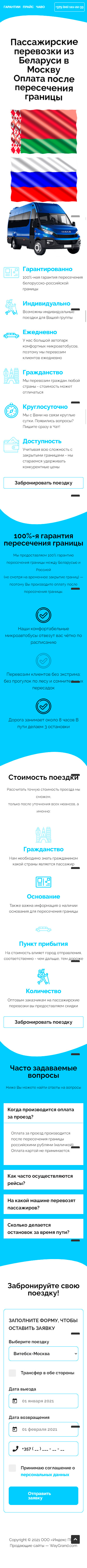 Закажите готовый продающий сайт лендинг #2528204 в Подольске за 1-3 дня «под ключ»: свёрстан, отрисован и готов к рекламе. Тематика шаблона «Пассажирские перевозки из Беларуси в Москву».