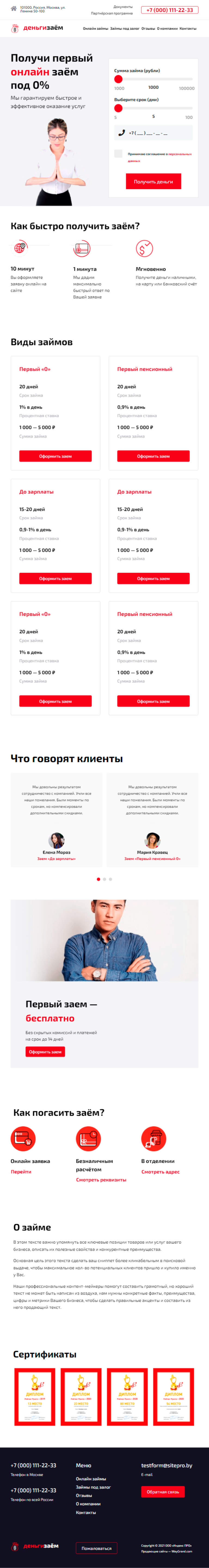 Закажите готовый продающий сайт лендинг #2825201 в Подольске за 1-3 дня «под ключ»: свёрстан, отрисован и готов к рекламе. Тематика шаблона «Деньги в долг».