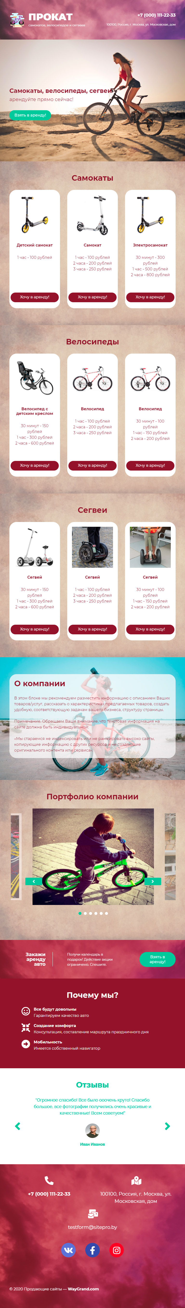 Закажите готовый продающий сайт лендинг #1907201 в Подольске за 1-3 дня «под ключ»: свёрстан, отрисован и готов к рекламе. Тематика шаблона «Прокат самокатов и велосипедов».