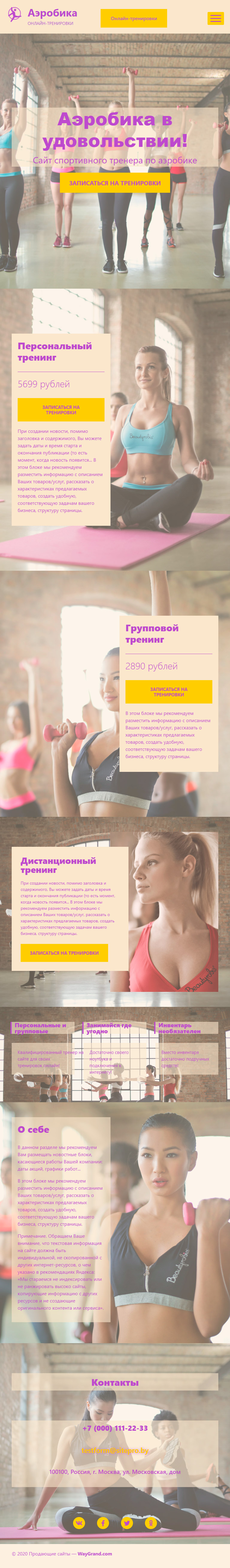 Закажите готовый продающий сайт лендинг #1955207 в Подольске за 1-3 дня «под ключ»: свёрстан, отрисован и готов к рекламе. Тематика шаблона «Аэробика онлайн тренировки».