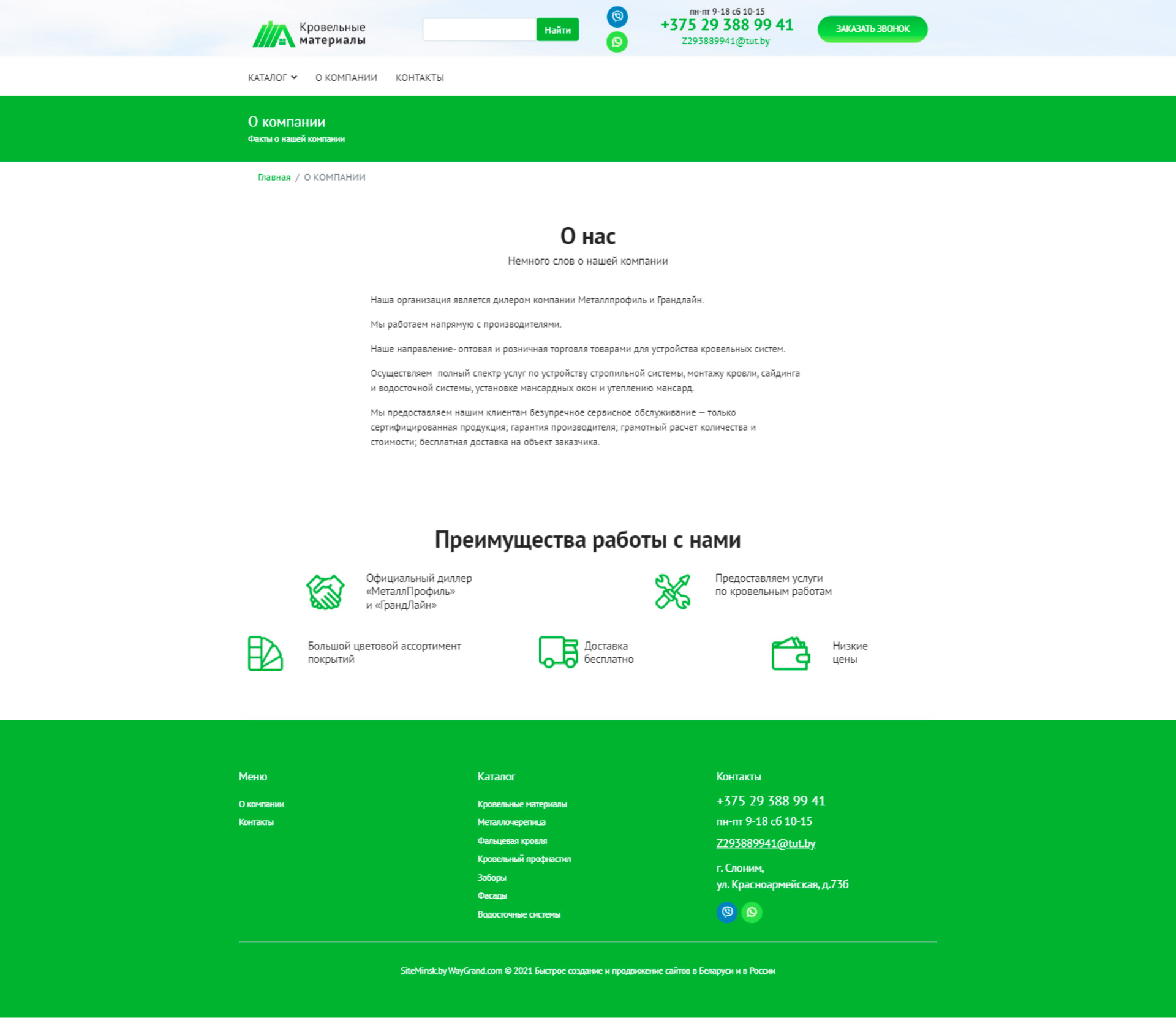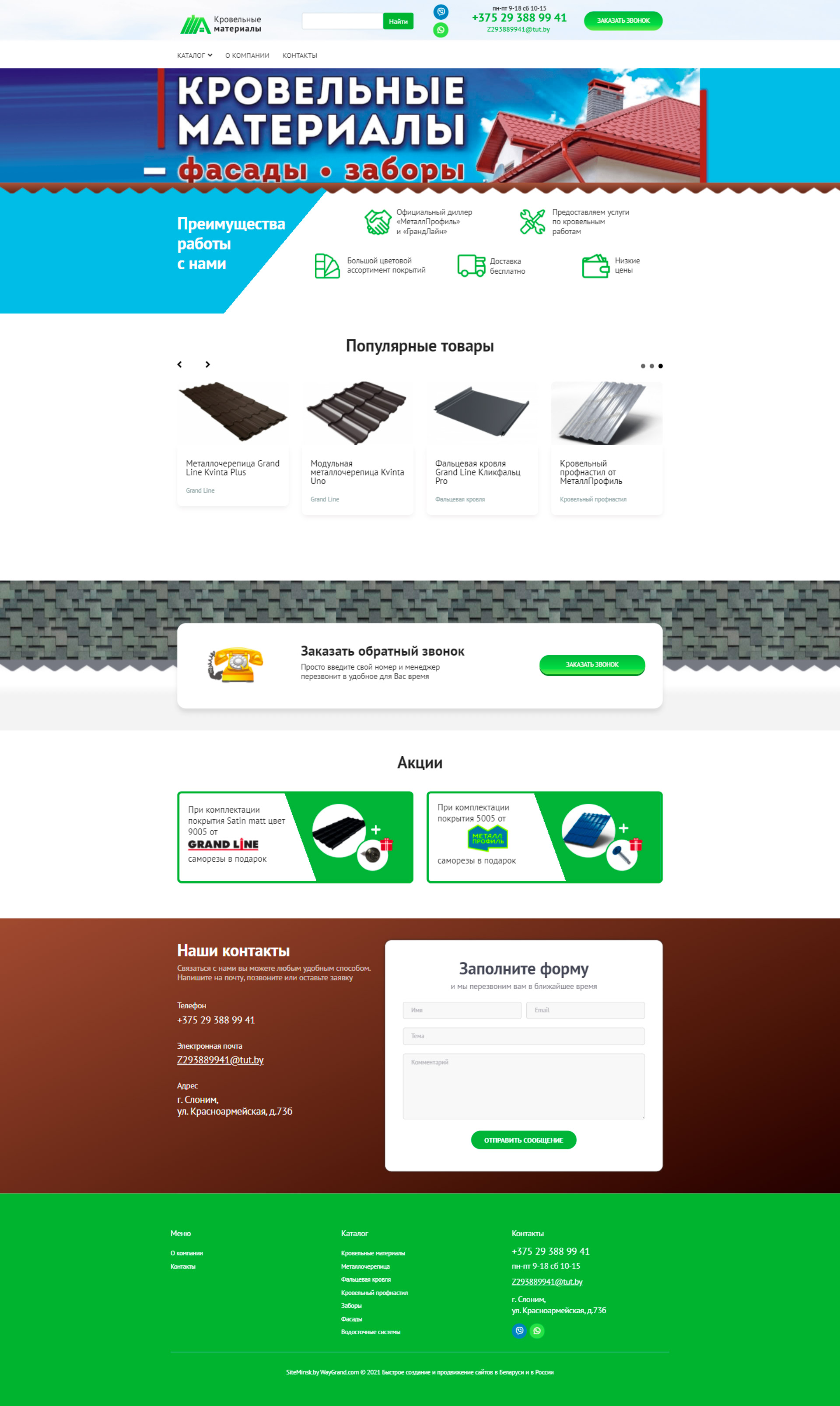 Закажите готовый продающий сайт визитка #324 в Подольске «под ключ» на waygrand по выгодной цене: свёрстан, отрисован и готов к рекламе. Тематика шаблона «Кровельные материалы».