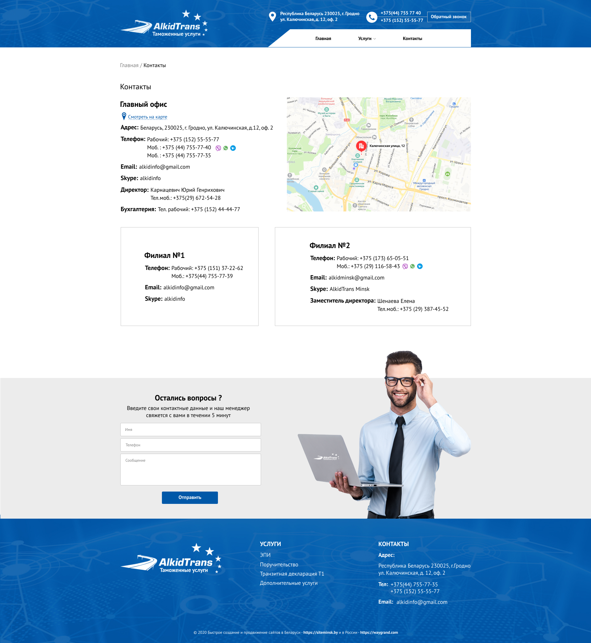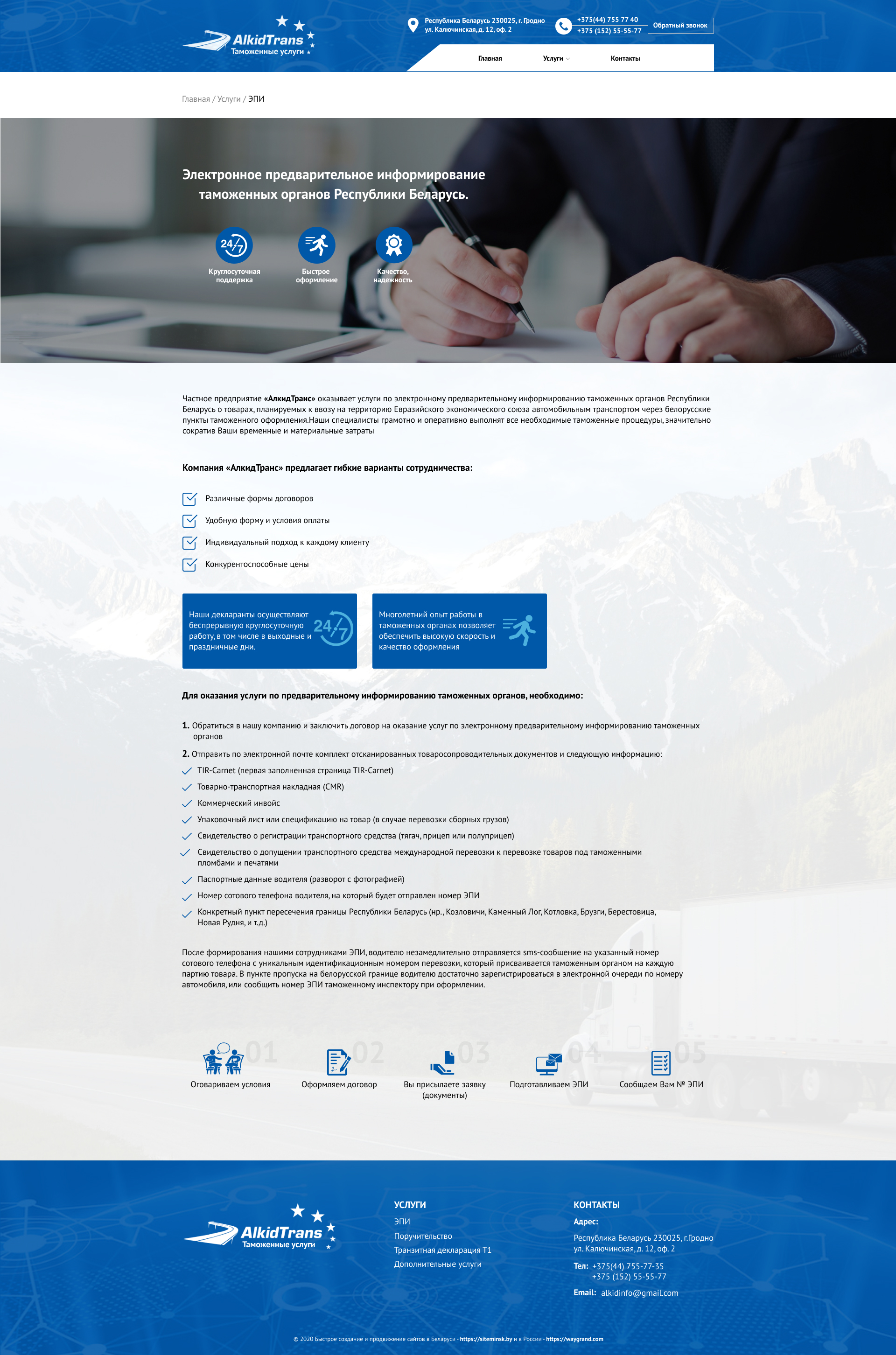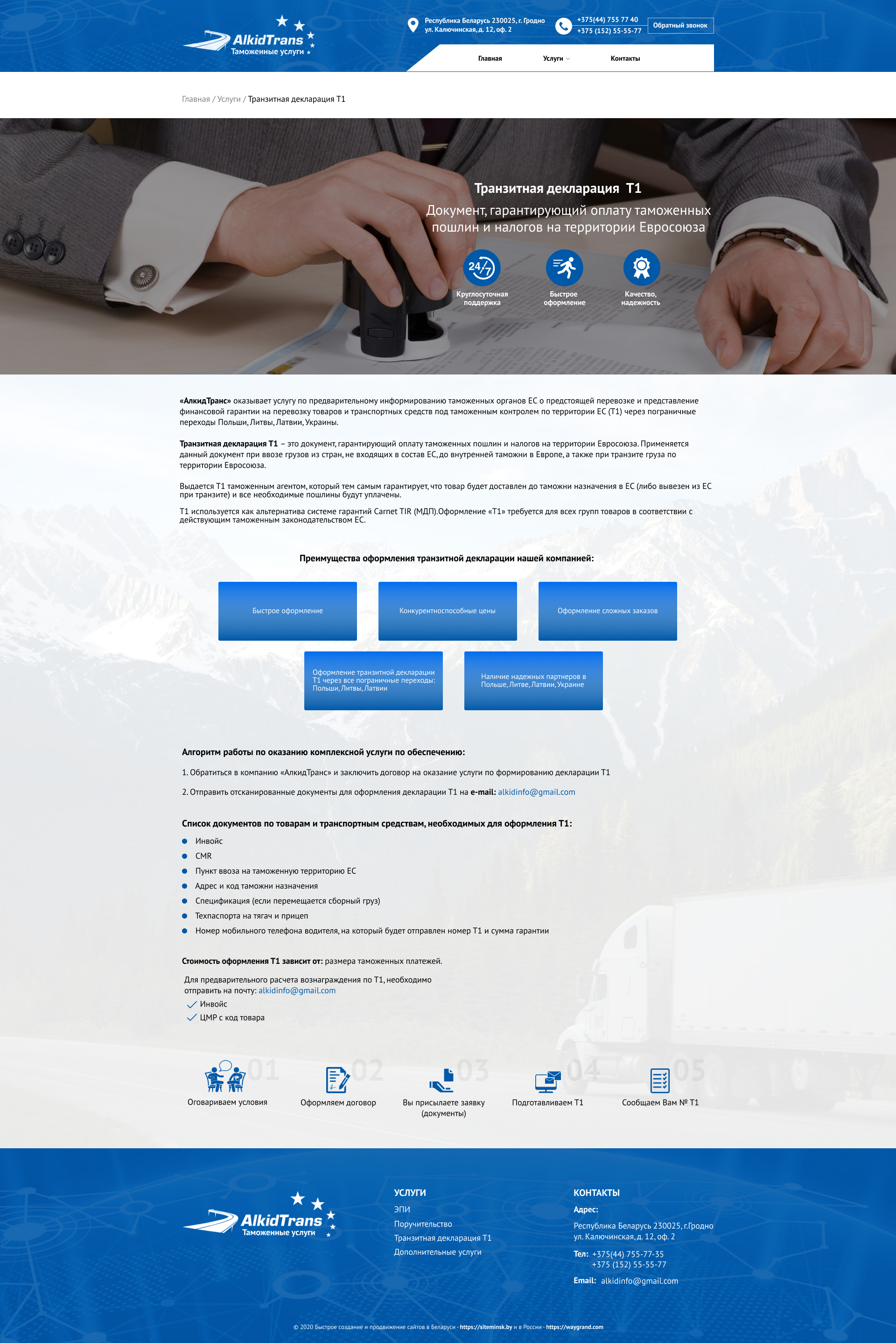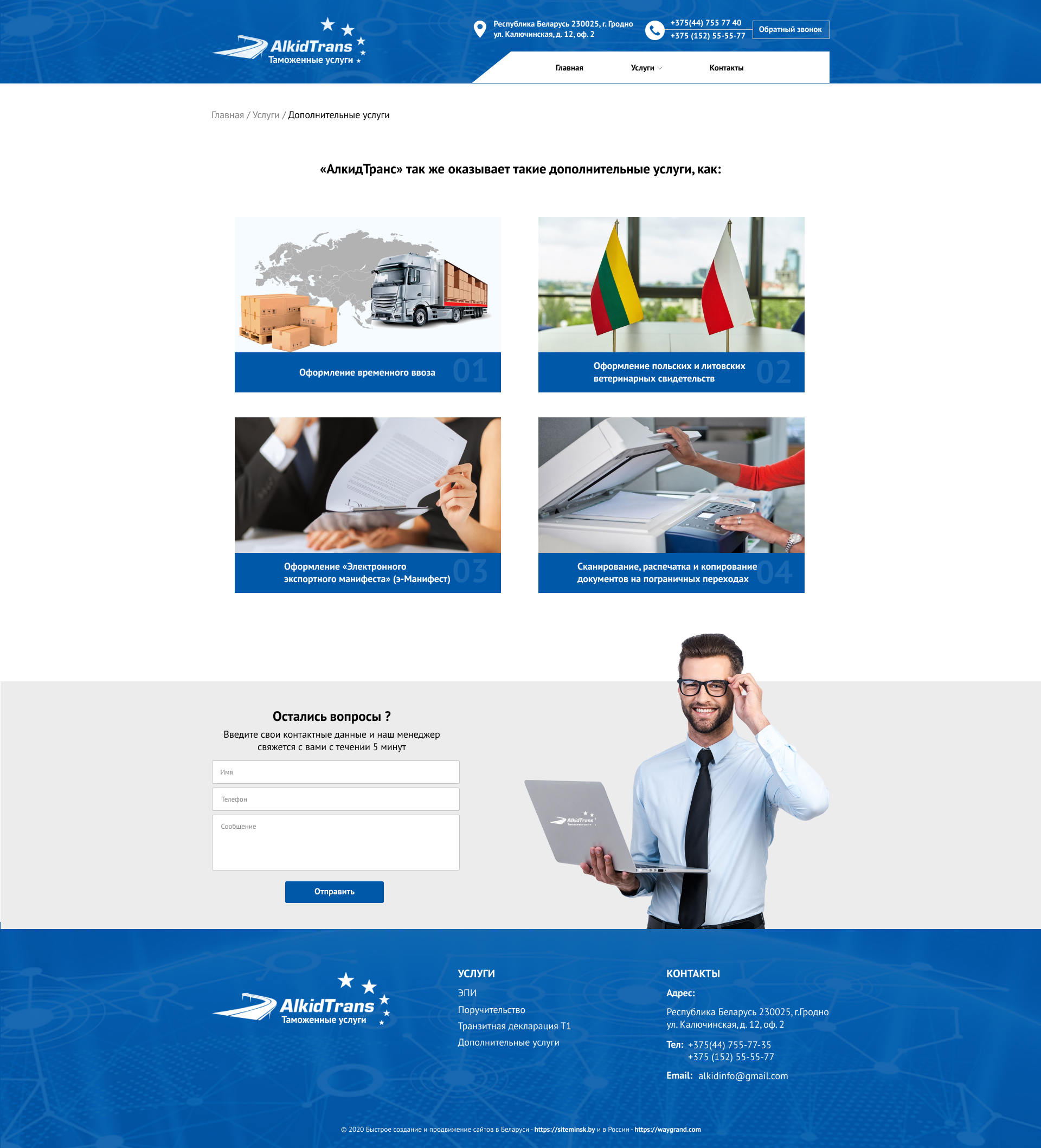 Закажите готовый продающий сайт визитка #234 в Подольске за 5-7 дня «под ключ»: свёрстан, отрисован и готов к рекламе. Тематика шаблона «Таможенные услуги».