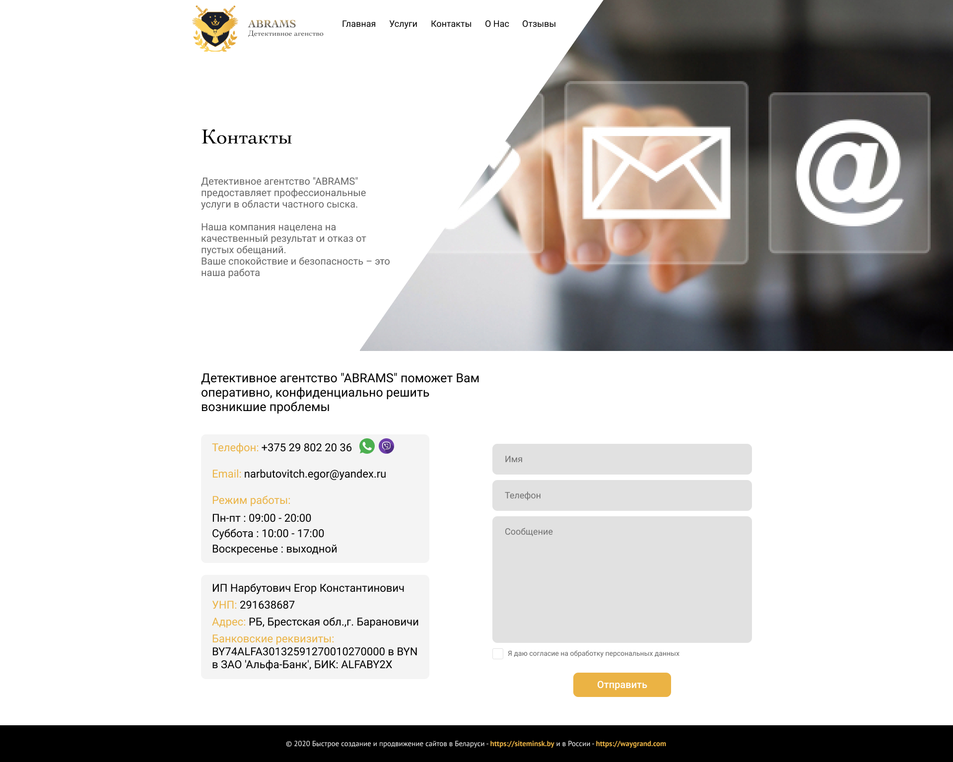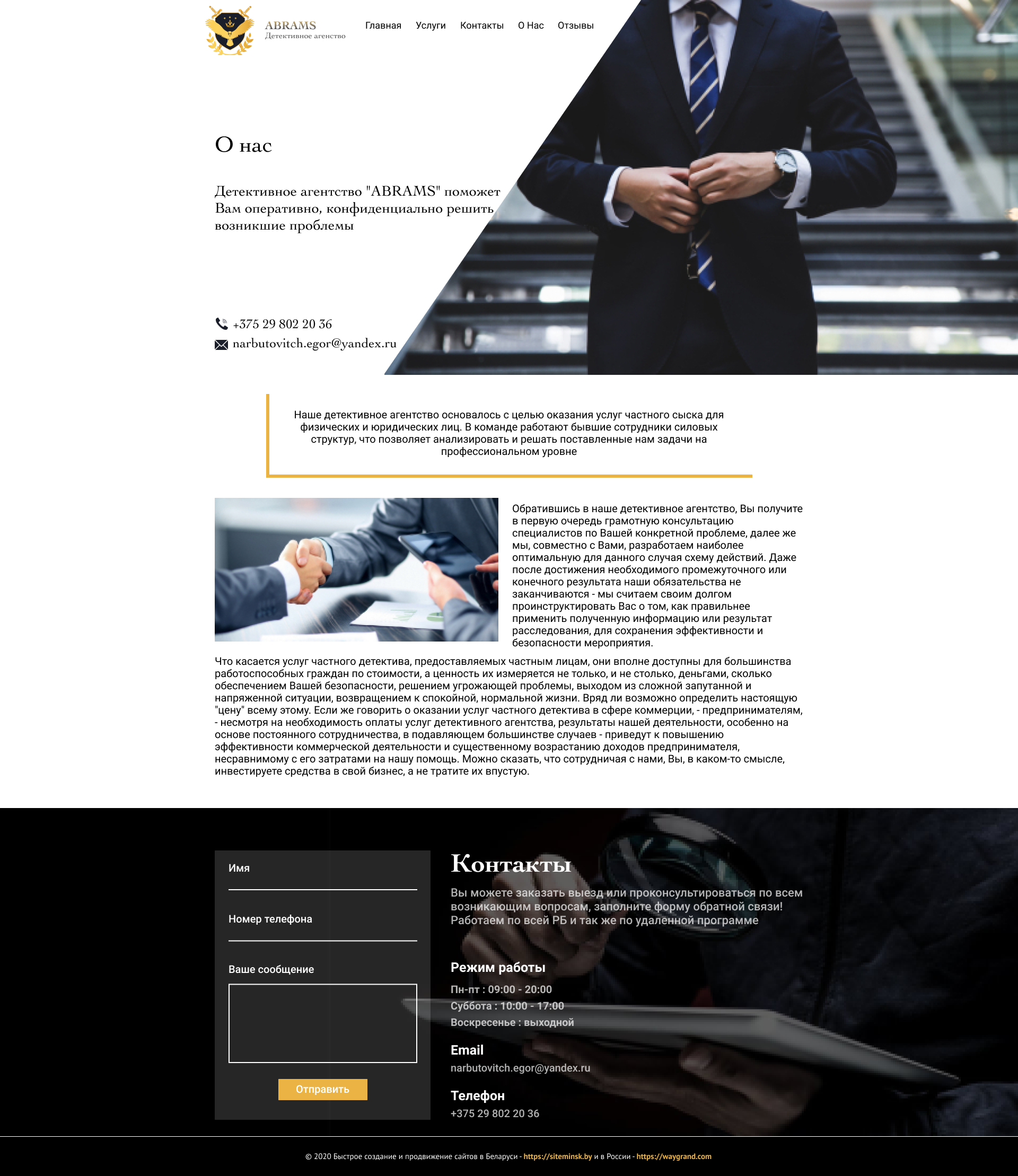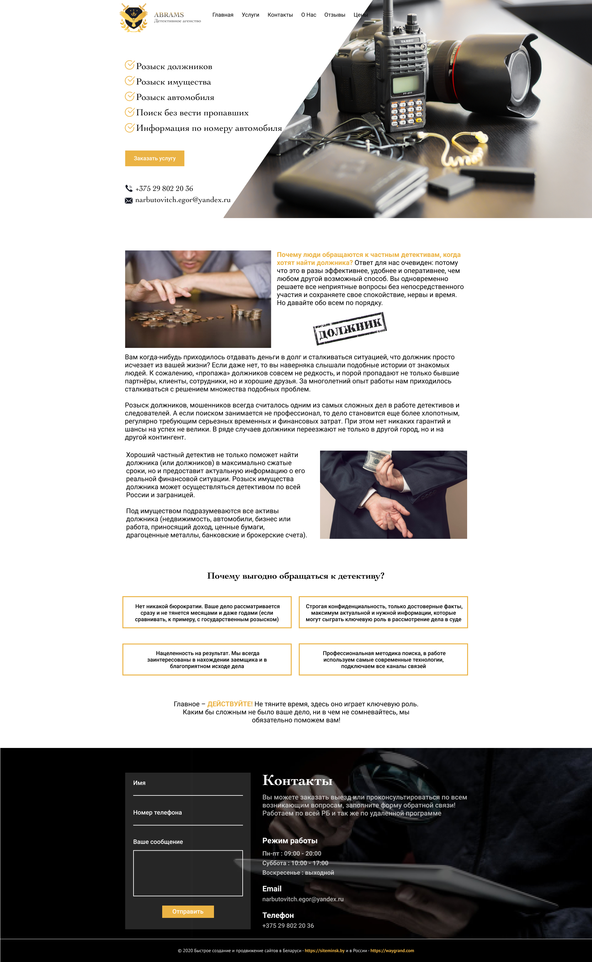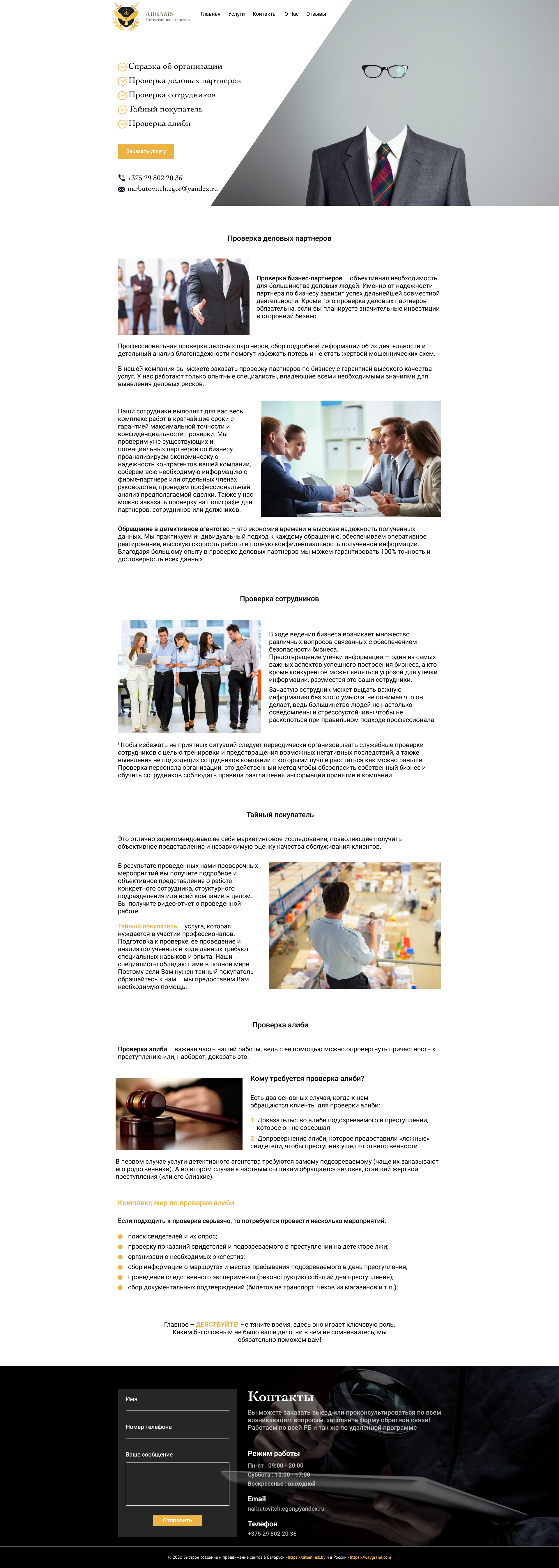 Закажите готовый продающий сайт визитка #239 в Подольске за 5-7 дня «под ключ»: свёрстан, отрисован и готов к рекламе. Тематика шаблона «Частное детективное агентство».